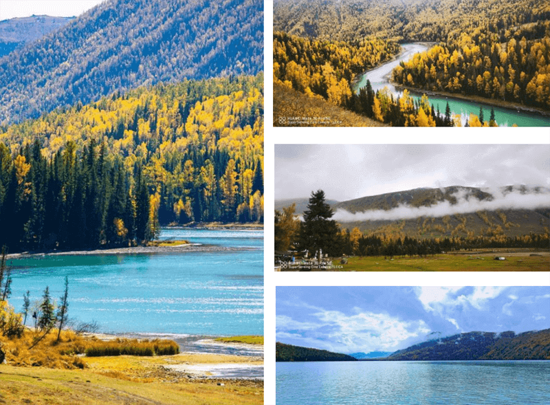 十月初的喀納斯,層林盡染,宛若童話(huà),只需一眼就能讓人魂?duì)繅?mèng)繞。喀納斯河沿著山谷蜿蜒,長(zhǎng)期受到?jīng)_刷侵蝕的河岸,造就了月亮灣、臥龍灣,以及神仙灣三大絕色美景。到了深秋,更似一幅巨大的水墨丹青。