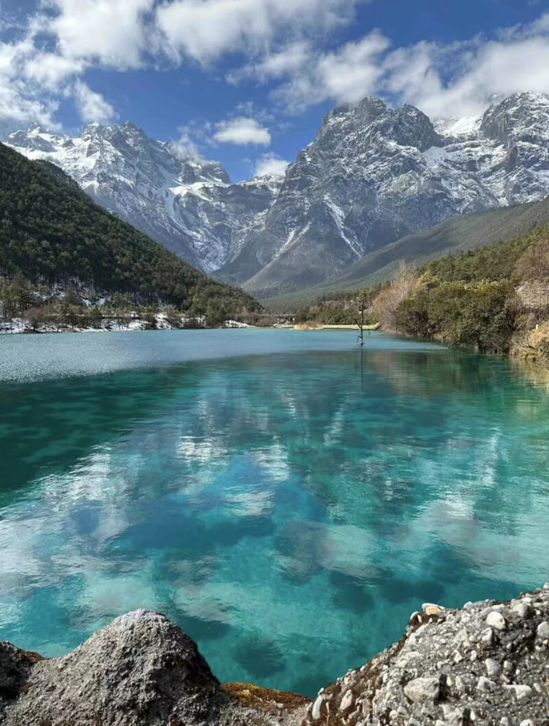 ↑玉龍雪山陽春白雪的逶迤風光