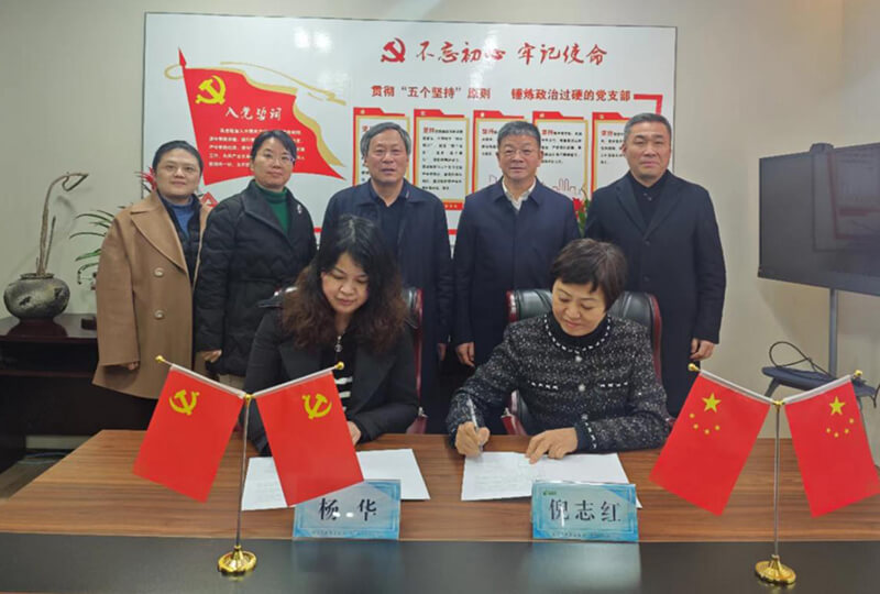 ↑商貿(mào)學院倪志紅副書記和集團黨總支楊華書記簽署“蘇商紅盟”結(jié)對共建協(xié)議