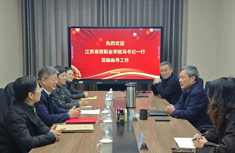 2024年1月8日下午,江蘇商貿(mào)職業(yè)學院黨委書記馮志明先生一行四人專程來到蘇商集團本部指導交流工作,集團董事長陳家俊先生熱情接待了馮書記一行。