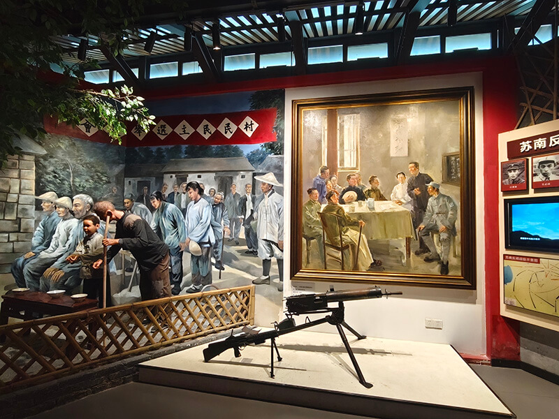 追尋一個(gè)個(gè)紅色印記,傾聽一個(gè)個(gè)紅色故事。黨員們沿著青石板路步入李巷深處,參觀了中國新四軍歷史研究館、抗日同志紀(jì)念館、新四軍領(lǐng)導(dǎo)人舊居等。同志們或駐足觀看,或交流感悟,一個(gè)個(gè)真實(shí)場景、一件件珍貴文物、一張張歷史照片,彷佛將大家?guī)Щ亓四嵌纹D苦卓絕的崢嶸歲月,也讓大家對黨組織帶領(lǐng)人民開展抗日斗爭的偉大歷程和光輝業(yè)績有了更加深入的了解。紅色李巷的“紅”,是革命斗爭的燎原星火,是先輩英烈的殷紅鮮血,是民族復(fù)興的火紅理想。