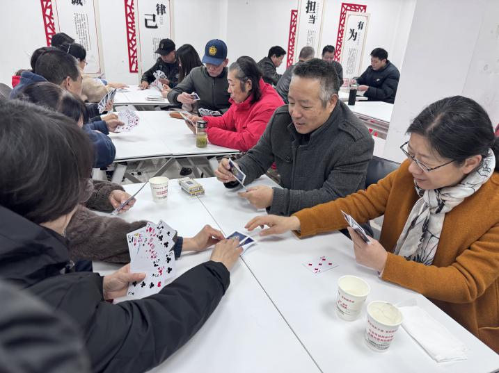 活動(dòng)現(xiàn)場(chǎng)氣氛熱烈,社區(qū)內(nèi)眾多摜蛋愛好者齊聚一堂,以牌會(huì)友、切磋技藝。作為一項(xiàng)兼具趣味性、競(jìng)技性與社交性的撲克游戲,摜蛋深受各年齡段居民的喜愛。比賽中,選手們時(shí)而凝神思索,時(shí)而默契配合,在輕松愉快的氛圍里展現(xiàn)著智慧與協(xié)作的魅力。這場(chǎng)比賽不僅是智力的較量,更是社區(qū)凝聚力的生動(dòng)寫照。長(zhǎng)干里社區(qū)新時(shí)代文明實(shí)踐站與社區(qū)文化站始終致力于開展形式多樣、內(nèi)容豐富的群眾文化活動(dòng),通過此類賽事進(jìn)一步推動(dòng)社區(qū)文化建設(shè),增強(qiáng)居民的歸屬感與幸福感。