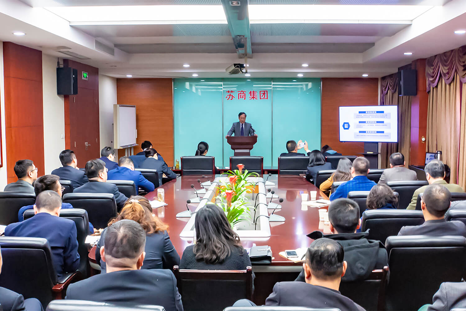 2019年3月16日下午,蘇商集團(tuán)在本部第 一會(huì)議室召開2019年工作會(huì)議,全面總結(jié)2018年工作,部署2019年工作。集團(tuán)總經(jīng)理室班子成員、本部全體員工和各公司骨干員工代表出席了會(huì)議。集團(tuán)副總經(jīng)理陳寅同志主持會(huì)議并作會(huì)議小結(jié)。