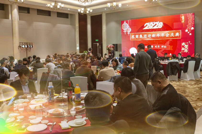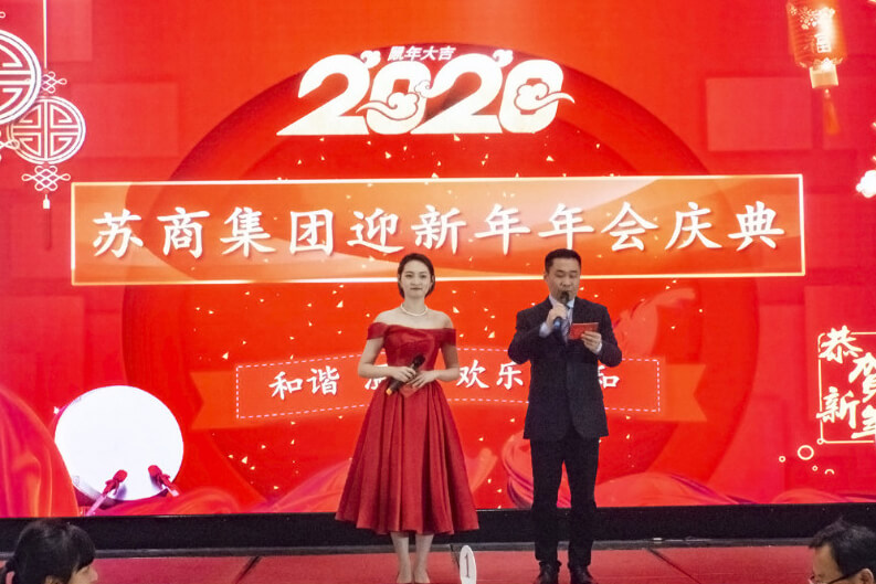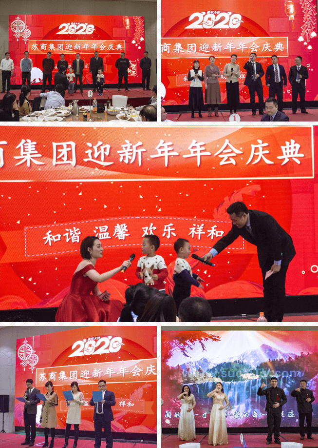 12月31日18:30,蘇商集團(tuán)迎新年年會在青旅酒店紫金廳隆重開幕。集團(tuán)領(lǐng)導(dǎo)和全體員工、大匯盈商業(yè)、河南特車、金城軌道的部分員工以及特邀嘉賓共120余人歡聚一堂,共敘佳話,喜迎新年。席間歡聲笑語、觥籌交錯,員工的表演精彩紛呈,歡聲雷動,互動游戲斗智斗勇,詼諧搞笑,百科搶答機(jī)智靈敏,當(dāng)仁不讓,抽獎活動連綿不斷,激動人心!