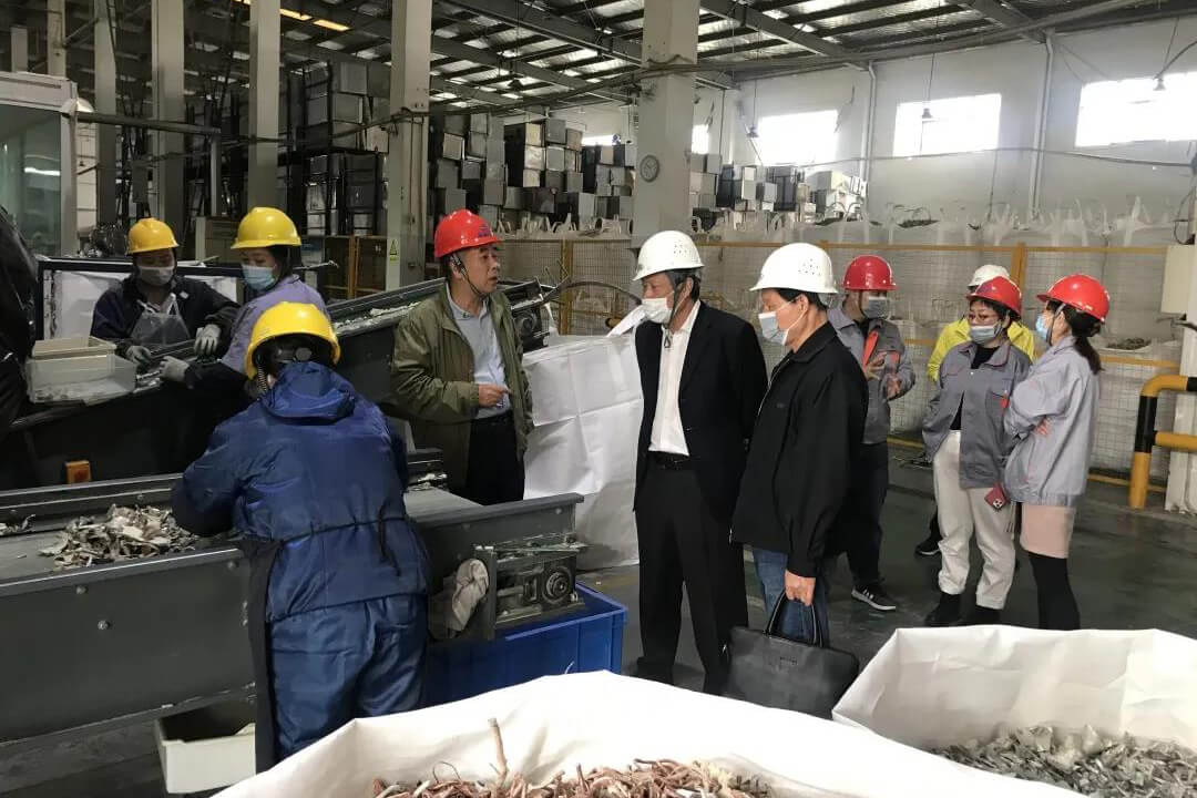 南京凱燕電子有限公司總經(jīng)理陳華明先生對(duì)陳家俊董事長一行表示熱烈歡迎!陳家俊董事長一行參觀了凱燕電子樣品展覽室、監(jiān)控中心、拆解處置車間、倉儲(chǔ)庫區(qū)等,深入了解了從廢舊家電入廠到產(chǎn)物出庫的規(guī)范化、信息化流程,通過調(diào)研,陳家俊董事長一行對(duì)凱燕電子把“讓電子廢棄物安全回家”作為企業(yè)使命給予了高度評(píng)價(jià)。