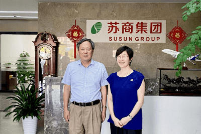 ↑陳家俊董事長(左一)和蔡亮主任( 右)在蘇商集團(tuán)總部合影留念